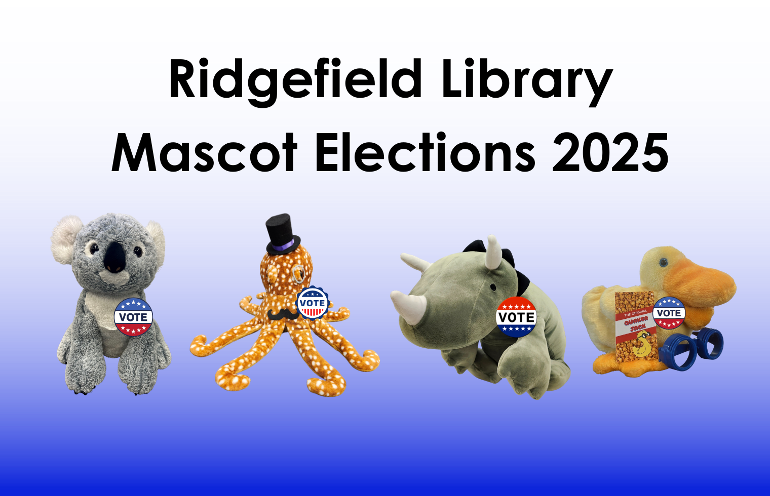 November 3-7: Mascot Fox’s time in office is coming to a close! This year we have four candidates running for election as Ridgefield Library Mascot. All humans aged 18 minutes or older are invited to vote in-person in the Lodewick Children’s Library starting Monday, November 3 until Saturday, November 7 at 5:00 pm. If you are unable to visit the Library during that time–do not fear! You can cast an absentee ballot during voting week: 2025 Mascot Election Absentee Ballot. This election voting will be done using Ranked Choice Voting, so each voter is asked to rank the four candidates in order of preference. Library cards are not required, but we do ask that only one ballot per person is submitted.